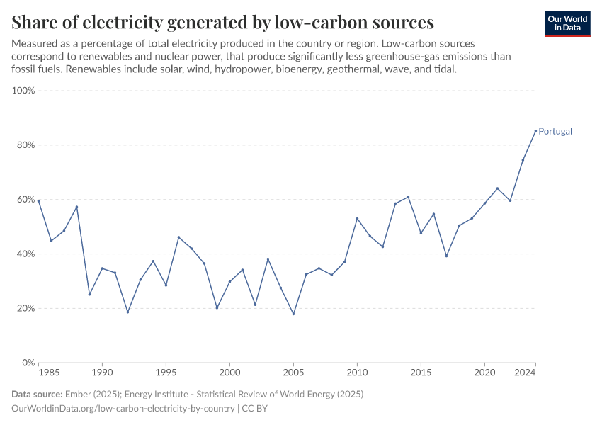 How much of Portugal’s electricity comes from low-carbon sources?