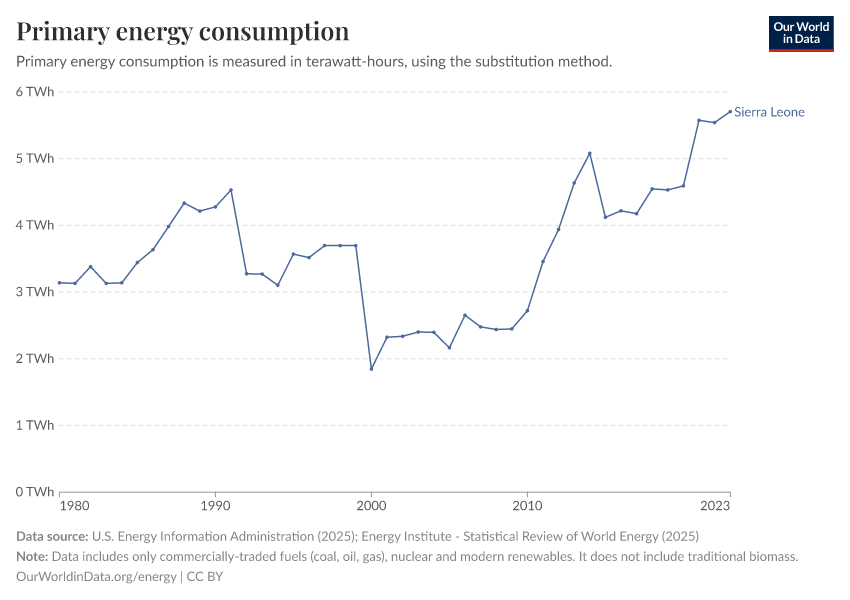 Hannah Ritchie (2025) - “Energy” Published online at OurWorldinData.org. Retrieved from: 'https://ourworldindata.org/profile/energy/sierra-leone' [Online Resource]BibTeX citation