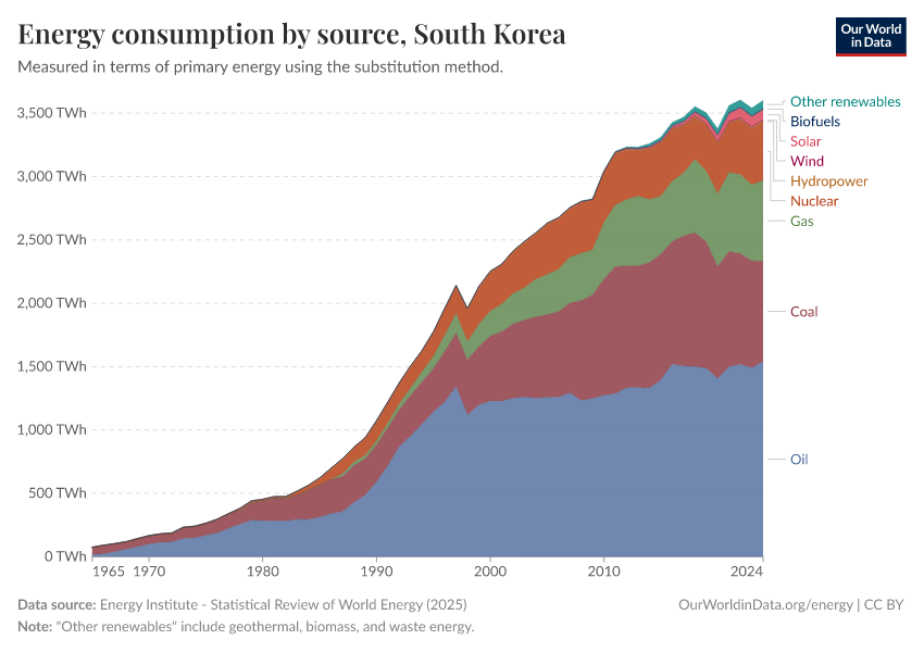 Hannah Ritchie (2025) - “Energy” Published online at OurWorldinData.org. Retrieved from: 'https://ourworldindata.org/profile/energy/south-korea' [Online Resource]BibTeX citation
