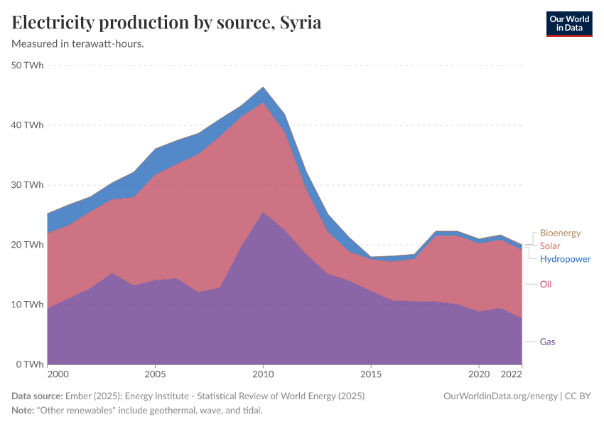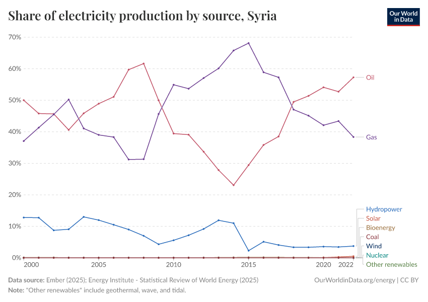Hannah Ritchie (2025) - “Energy” Published online at OurWorldinData.org. Retrieved from: 'https://ourworldindata.org/profile/energy/syria' [Online Resource]BibTeX citation
