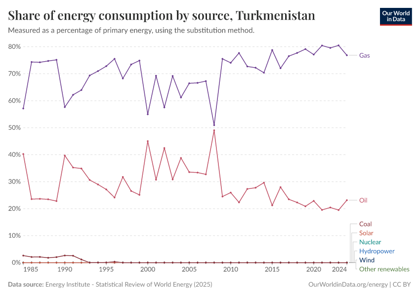 Hannah Ritchie (2025) - “Energy” Published online at OurWorldinData.org. Retrieved from: 'https://ourworldindata.org/profile/energy/turkmenistan' [Online Resource]BibTeX citation