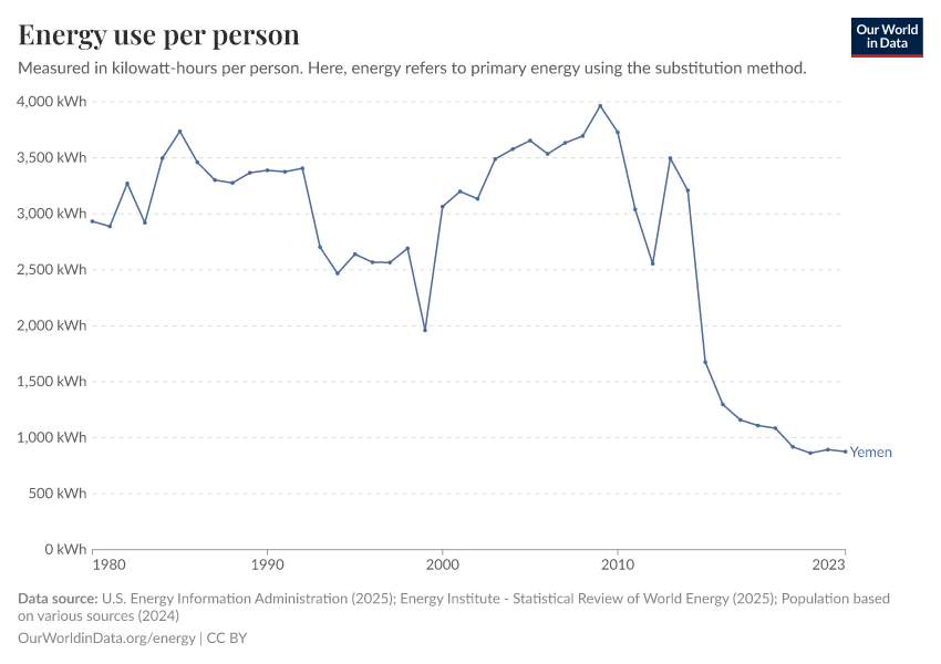 Hannah Ritchie (2025) - “Energy” Published online at OurWorldinData.org. Retrieved from: 'https://ourworldindata.org/profile/energy/yemen' [Online Resource]BibTeX citation