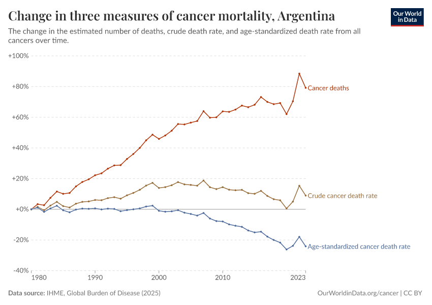Are deaths from cancer in Argentina increasing or decreasing?