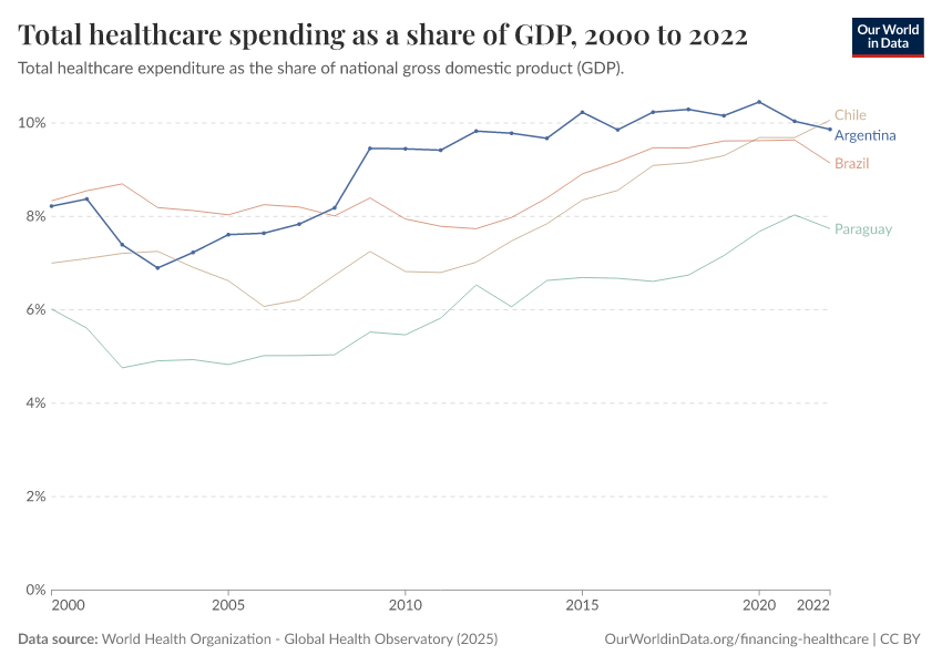In 2022, Argentina’s healthcare spending was equivalent to 9.9% of its national gross domestic product (GDP).