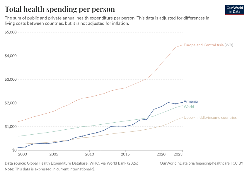 In 2022, Armenia’s healthcare spending was equivalent to 10% of its national gross domestic product (GDP).