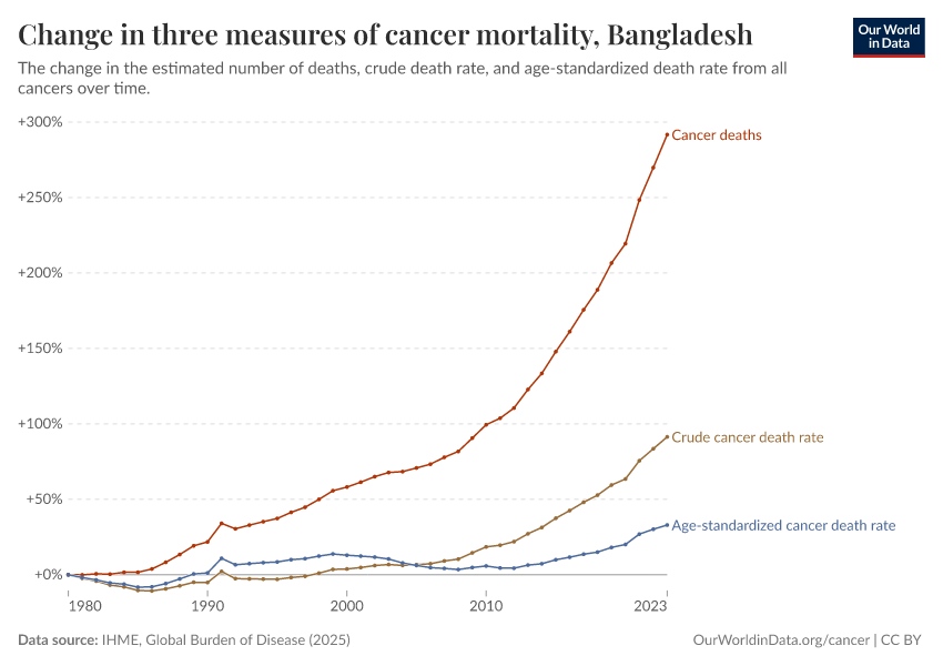 Are deaths from cancer in Bangladesh increasing or decreasing?