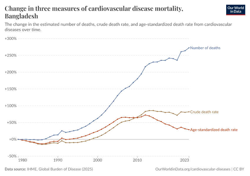 Are deaths from cardiovascular disease in Bangladesh increasing or decreasing?