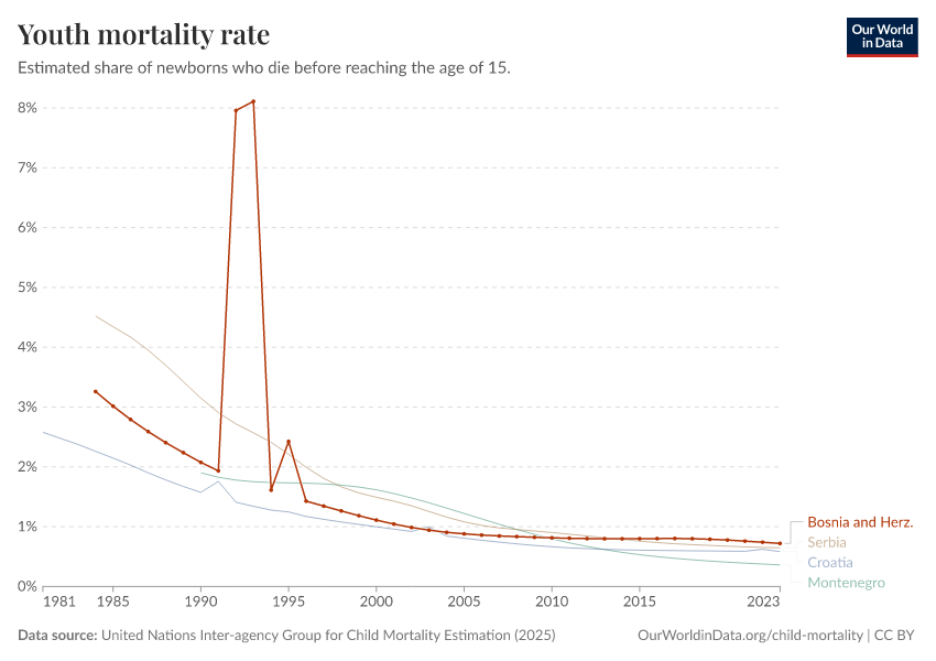 The latest data, referring to 2023, shows that 0.7% died before the age of 15 in Bosnia and Herzegovina.