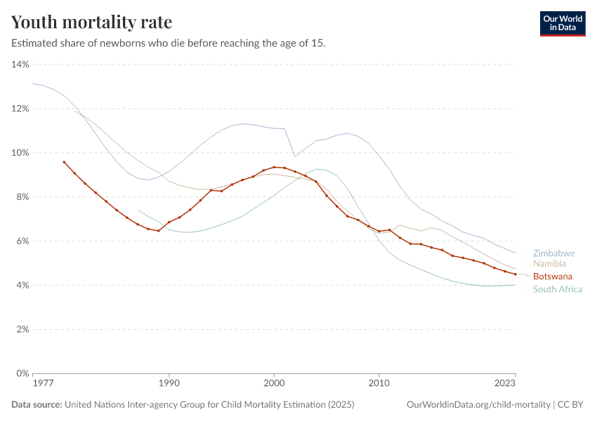 This rate is shown for Botswana in the chart below, alongside neighboring countries for comparison.