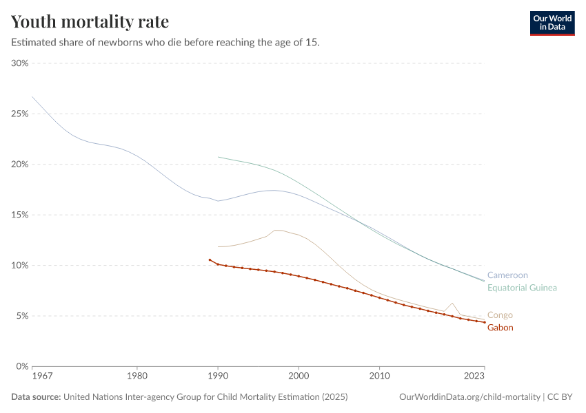 This rate is shown for Gabon in the chart below, alongside neighboring countries for comparison.