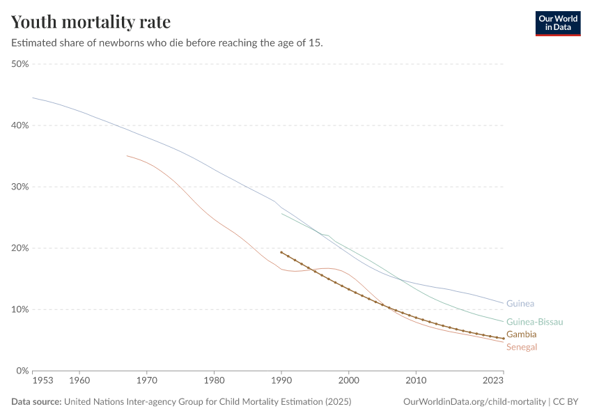This rate is shown for the Gambia in the chart below, alongside neighboring countries for comparison.