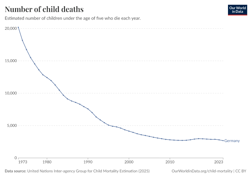 In the chart, you can see the number of children under five in Germany who die in a particular year. In 2023, it was 2,680 children.
