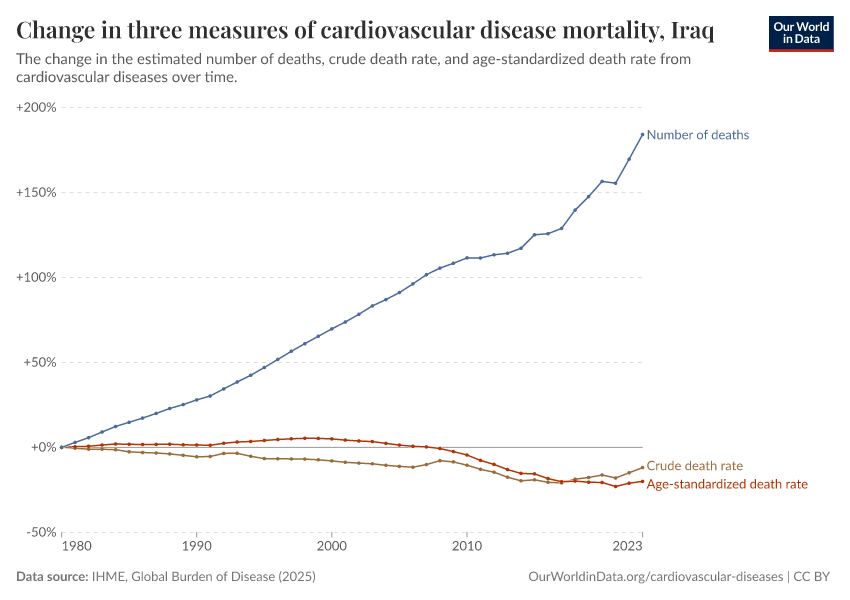 Are deaths from cardiovascular disease in Iraq increasing or decreasing?