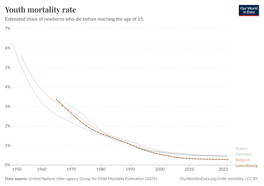 The latest data, referring to 2023, shows that 0.3% died before the age of 15 in Luxembourg.