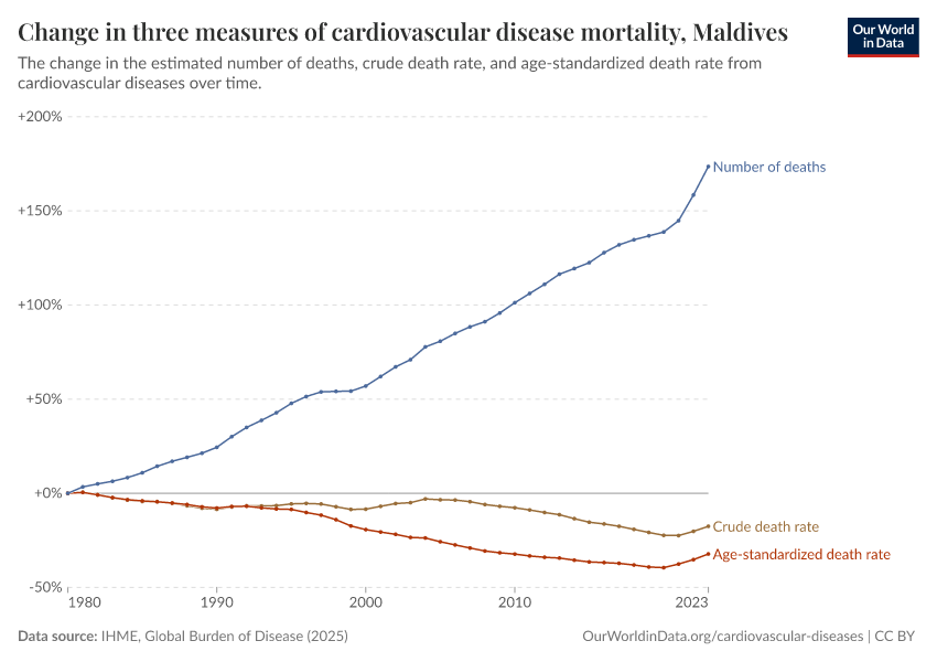 Are deaths from cardiovascular disease in the Maldives increasing or decreasing?