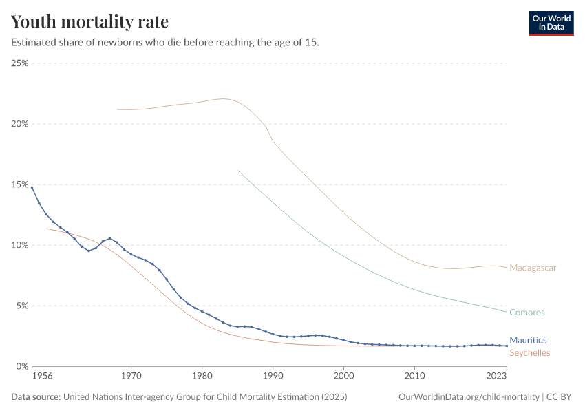 This rate is shown for Mauritius in the chart below, alongside neighboring countries for comparison.