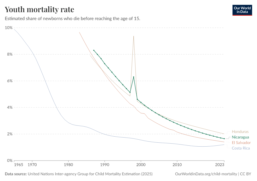 This rate is shown for Nicaragua in the chart below, alongside neighboring countries for comparison.