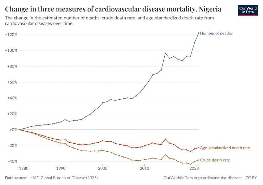 Are deaths from cardiovascular disease in Nigeria increasing or decreasing?