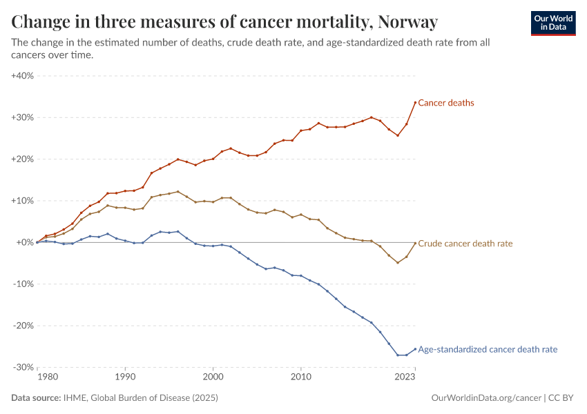 Are deaths from cancer in Norway increasing or decreasing?