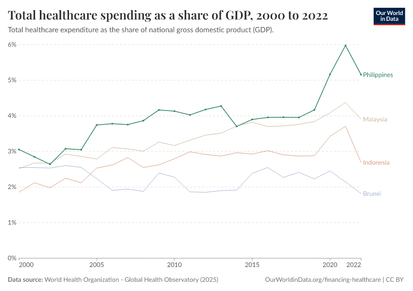 In 2022, the Philippines’ healthcare spending was equivalent to 5.2% of its national gross domestic product (GDP).