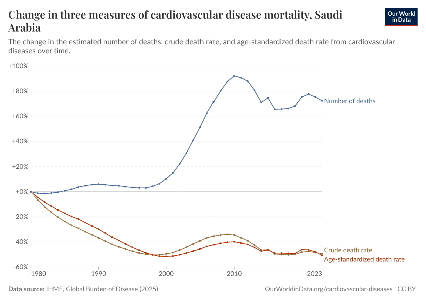 Are deaths from cardiovascular disease in Saudi Arabia increasing or decreasing?