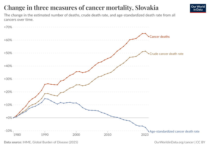 Are deaths from cancer in Slovakia increasing or decreasing?