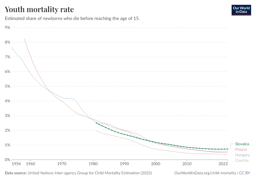 The latest data, referring to 2023, shows that 0.7% died before the age of 15 in Slovakia.