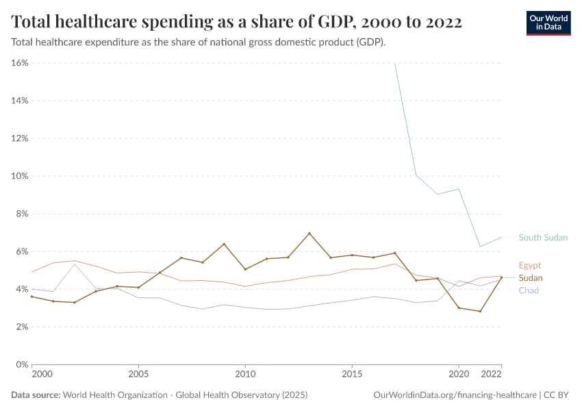 In 2022, Sudan’s healthcare spending was equivalent to 4.6% of its national gross domestic product (GDP).