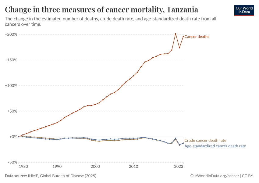 Are deaths from cancer in Tanzania increasing or decreasing?