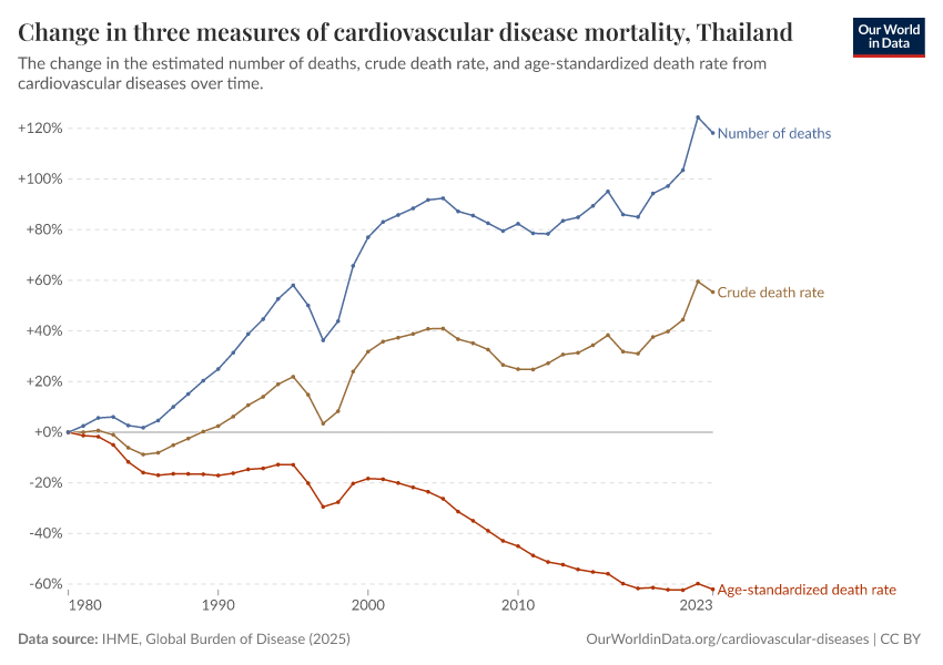 Are deaths from cardiovascular disease in Thailand increasing or decreasing?