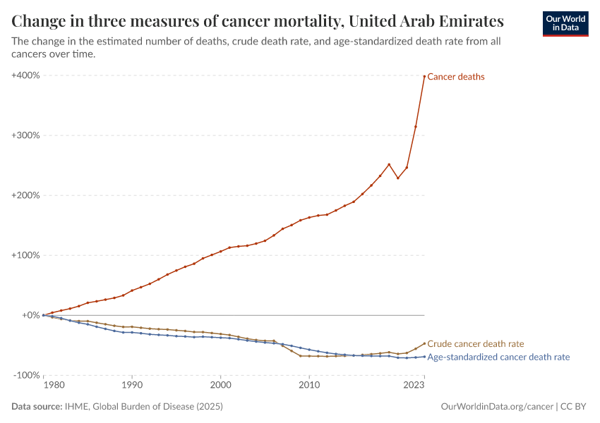 Are deaths from cancer in the United Arab Emirates increasing or decreasing?