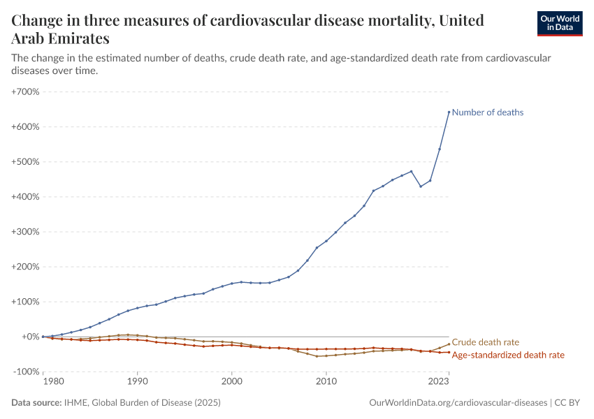 Are deaths from cardiovascular disease in the United Arab Emirates increasing or decreasing?
