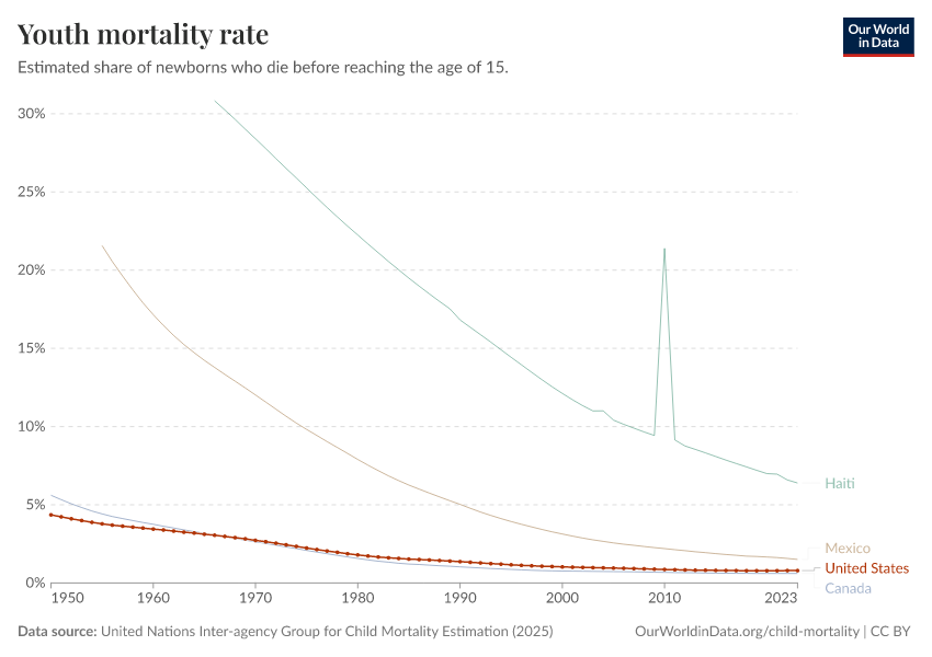The latest data, referring to 2023, shows that 0.8% died before the age of 15 in the United States.