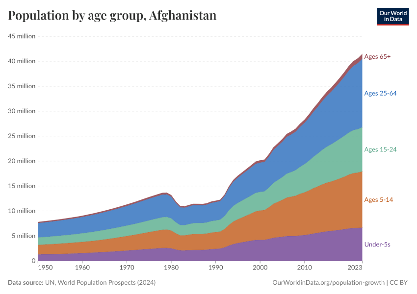 Hannah Ritchie (2026) - “Population and Demography” Published online at OurWorldinData.org. Retrieved from: 'https://ourworldindata.org/profile/population-demography/afghanistan' [Online Resource]BibTeX citation