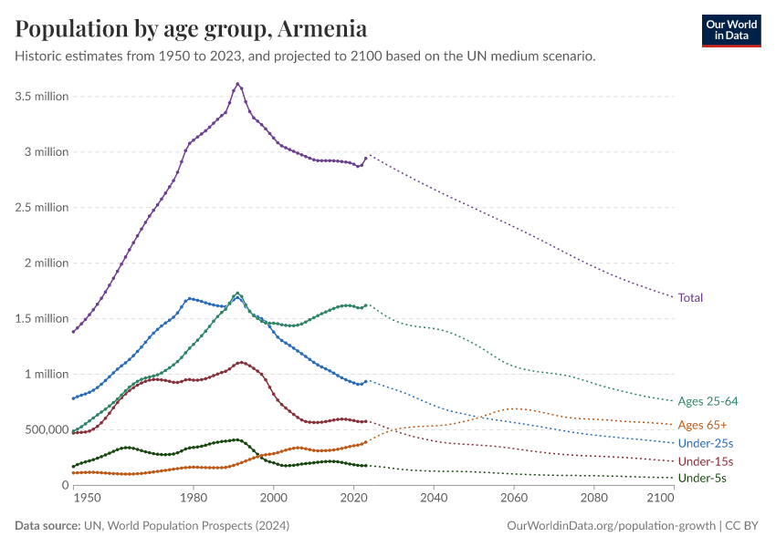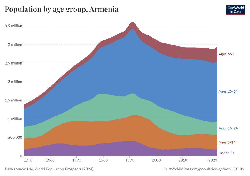 Hannah Ritchie (2026) - “Population and Demography” Published online at OurWorldinData.org. Retrieved from: 'https://ourworldindata.org/profile/population-demography/armenia' [Online Resource]BibTeX citation
