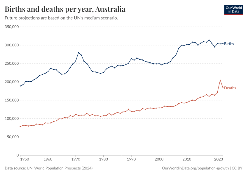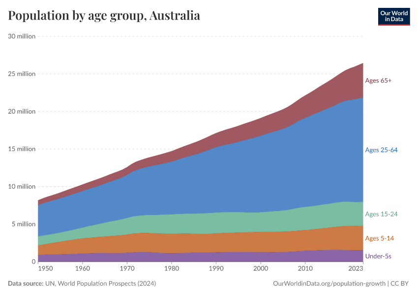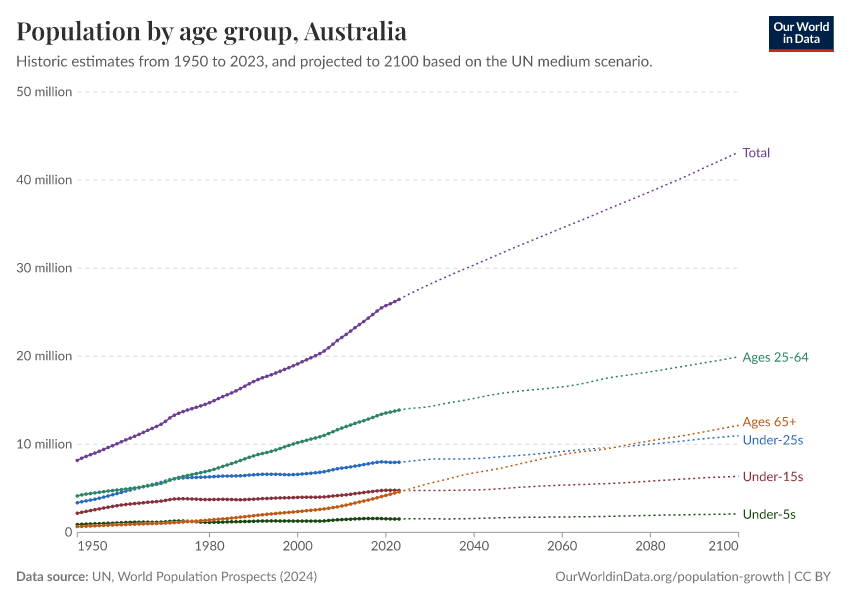 Hannah Ritchie (2026) - “Population and Demography” Published online at OurWorldinData.org. Retrieved from: 'https://ourworldindata.org/profile/population-demography/australia' [Online Resource]BibTeX citation