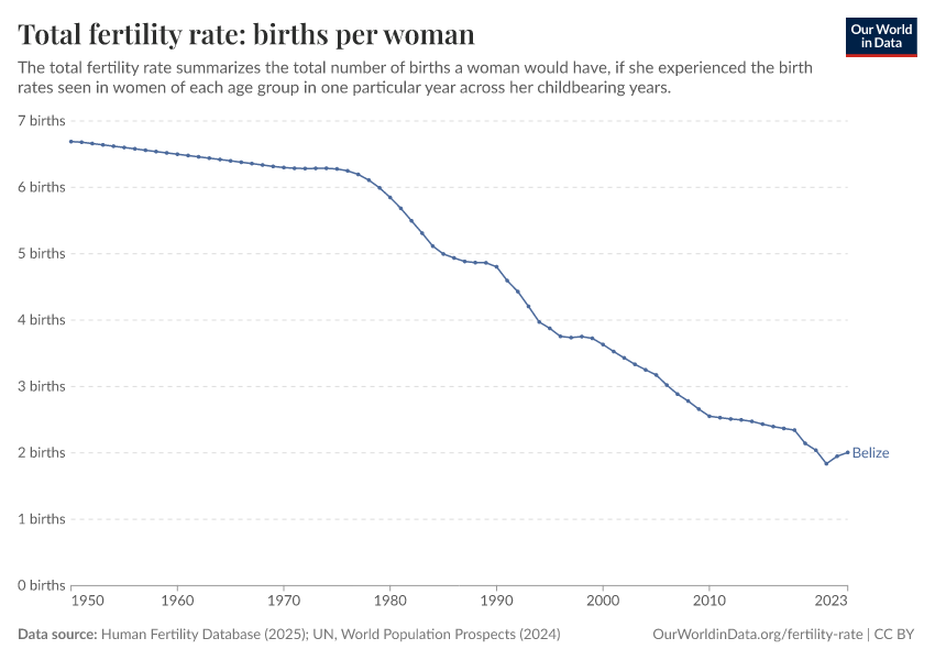 In 2023, Belize’s total fertility rate was 2.01 births per woman.