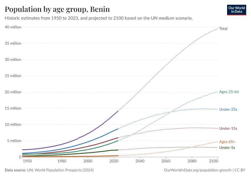 Hannah Ritchie (2026) - “Population and Demography” Published online at OurWorldinData.org. Retrieved from: 'https://ourworldindata.org/profile/population-demography/benin' [Online Resource]BibTeX citation
