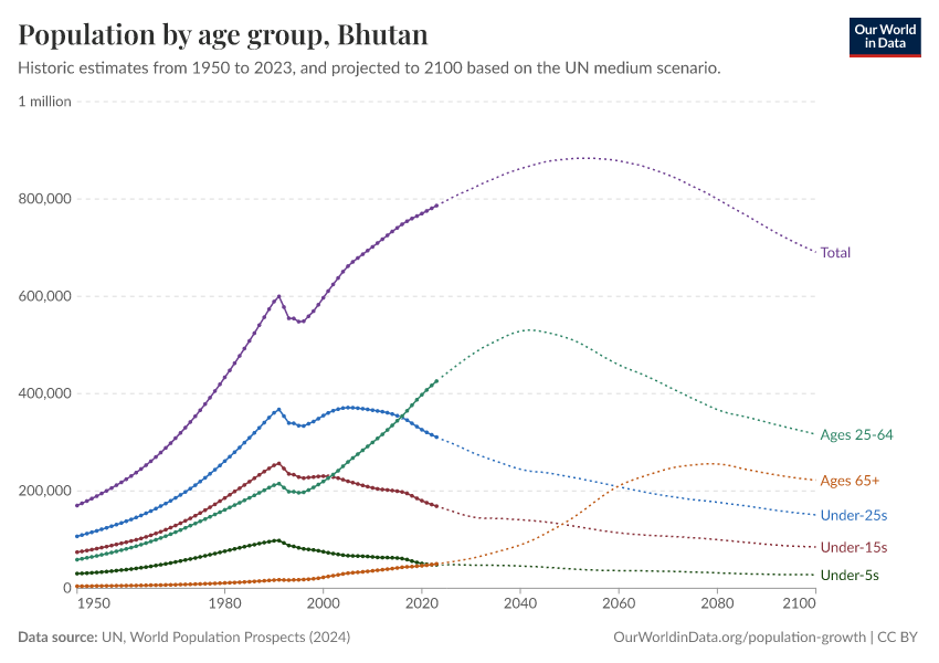 Hannah Ritchie (2026) - “Population and Demography” Published online at OurWorldinData.org. Retrieved from: 'https://ourworldindata.org/profile/population-demography/bhutan' [Online Resource]BibTeX citation