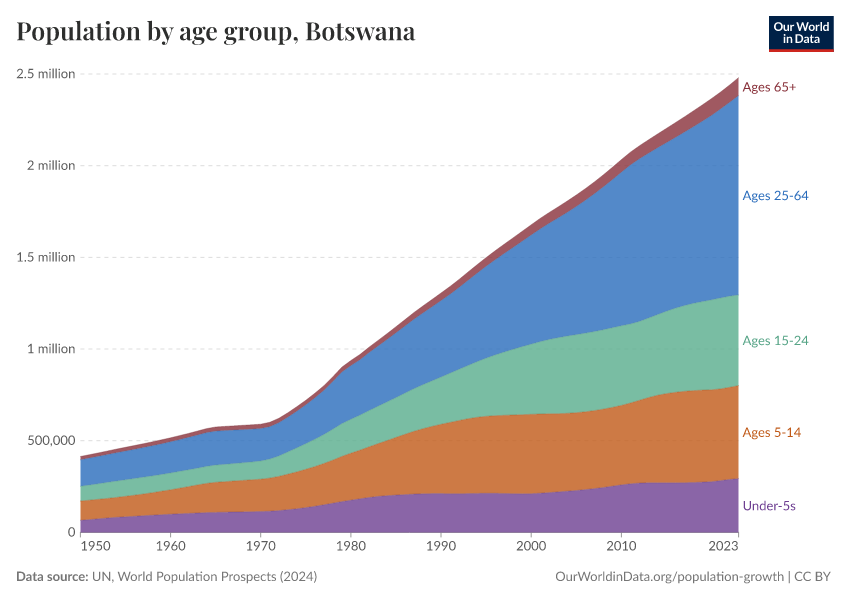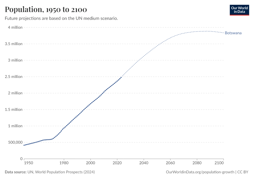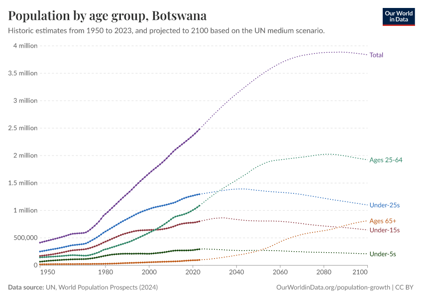 Hannah Ritchie (2026) - “Population and Demography” Published online at OurWorldinData.org. Retrieved from: 'https://ourworldindata.org/profile/population-demography/botswana' [Online Resource]BibTeX citation