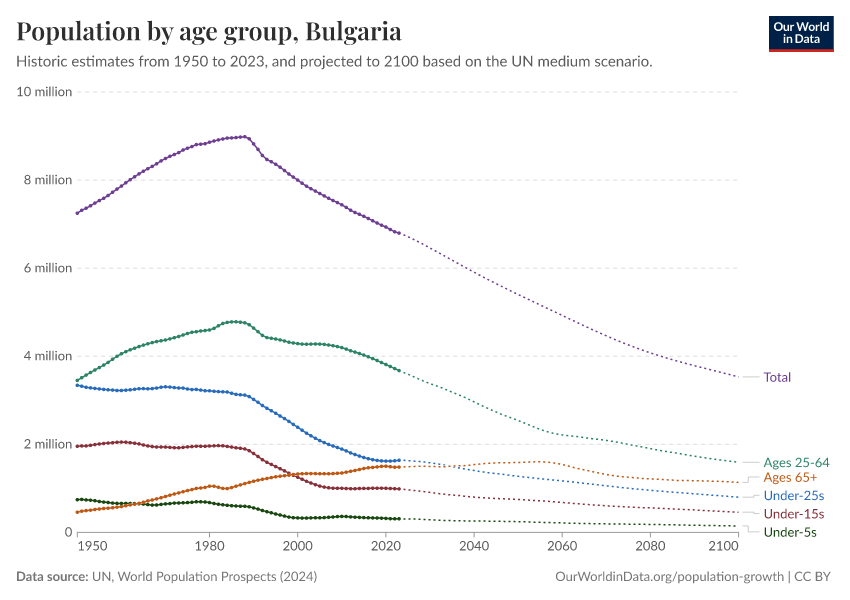 Hannah Ritchie (2026) - “Population and Demography” Published online at OurWorldinData.org. Retrieved from: 'https://ourworldindata.org/profile/population-demography/bulgaria' [Online Resource]BibTeX citation