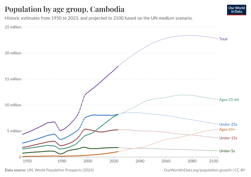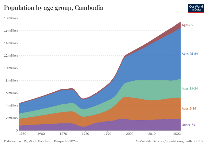 Hannah Ritchie (2026) - “Population and Demography” Published online at OurWorldinData.org. Retrieved from: 'https://ourworldindata.org/profile/population-demography/cambodia' [Online Resource]BibTeX citation