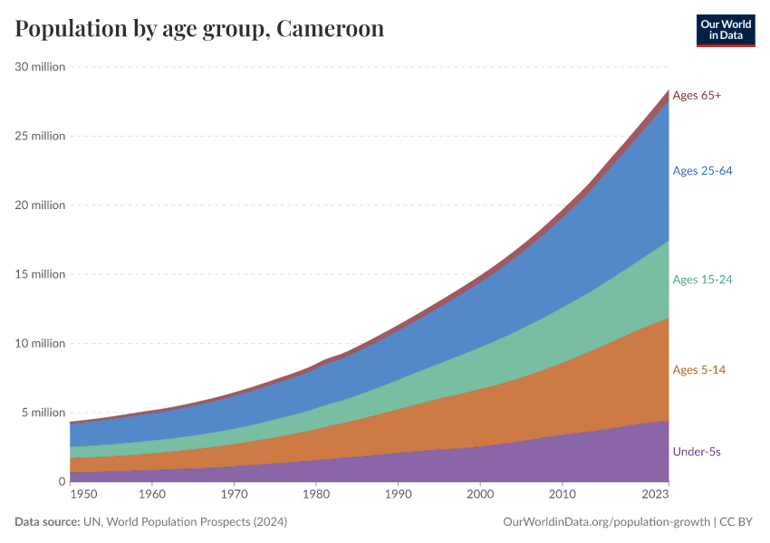 Hannah Ritchie (2026) - “Population and Demography” Published online at OurWorldinData.org. Retrieved from: 'https://ourworldindata.org/profile/population-demography/cameroon' [Online Resource]BibTeX citation