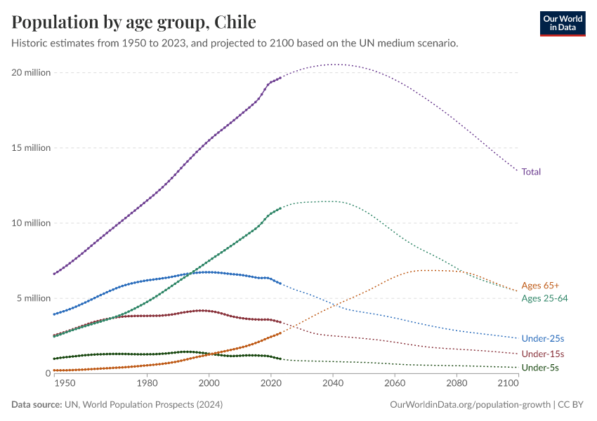 Hannah Ritchie (2026) - “Population and Demography” Published online at OurWorldinData.org. Retrieved from: 'https://ourworldindata.org/profile/population-demography/chile' [Online Resource]BibTeX citation