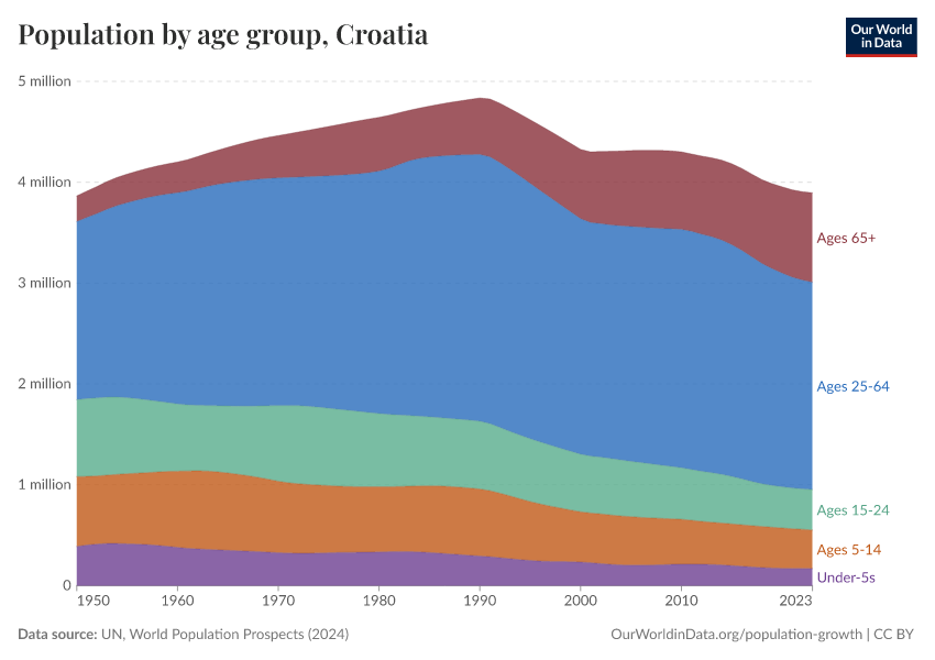 Hannah Ritchie (2026) - “Population and Demography” Published online at OurWorldinData.org. Retrieved from: 'https://ourworldindata.org/profile/population-demography/croatia' [Online Resource]BibTeX citation