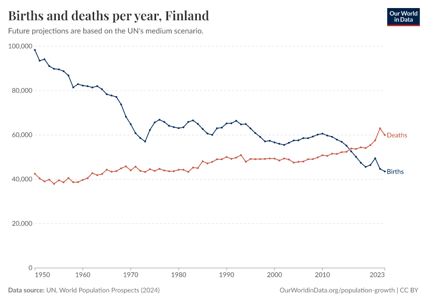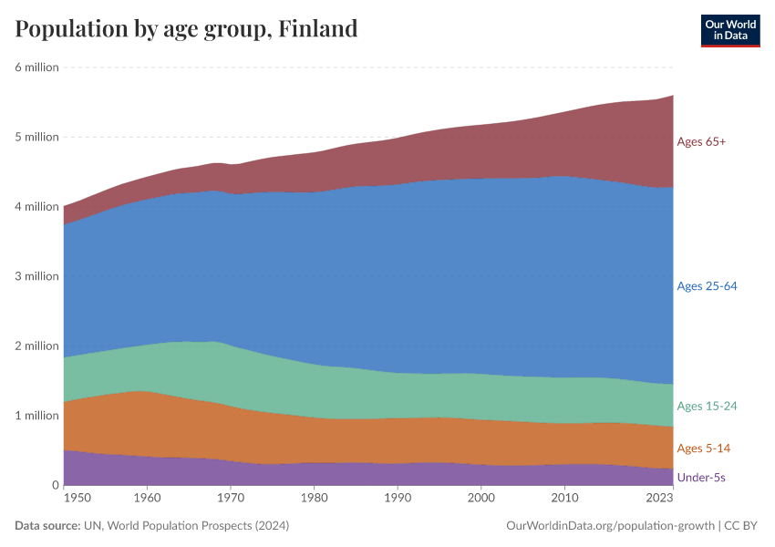 Hannah Ritchie (2026) - “Population and Demography” Published online at OurWorldinData.org. Retrieved from: 'https://ourworldindata.org/profile/population-demography/finland' [Online Resource]BibTeX citation