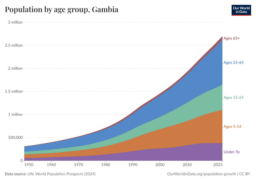 Hannah Ritchie (2026) - “Population and Demography” Published online at OurWorldinData.org. Retrieved from: 'https://ourworldindata.org/profile/population-demography/gambia' [Online Resource]BibTeX citation