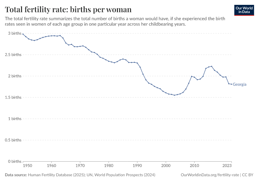 In 2023, Georgia’s total fertility rate was 1.81 births per woman.