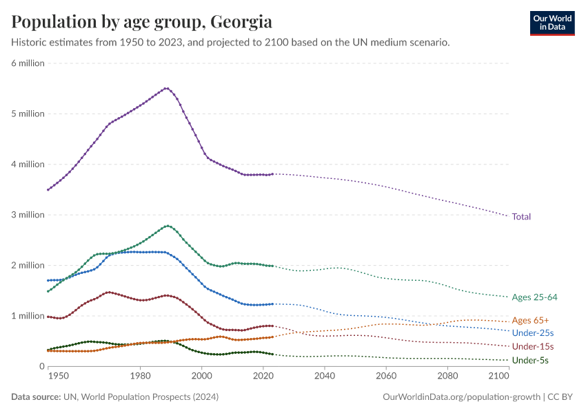 Hannah Ritchie (2026) - “Population and Demography” Published online at OurWorldinData.org. Retrieved from: 'https://ourworldindata.org/profile/population-demography/georgia' [Online Resource]BibTeX citation
