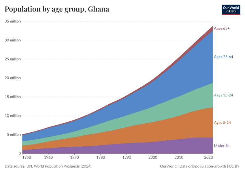 Hannah Ritchie (2026) - “Population and Demography” Published online at OurWorldinData.org. Retrieved from: 'https://ourworldindata.org/profile/population-demography/ghana' [Online Resource]BibTeX citation